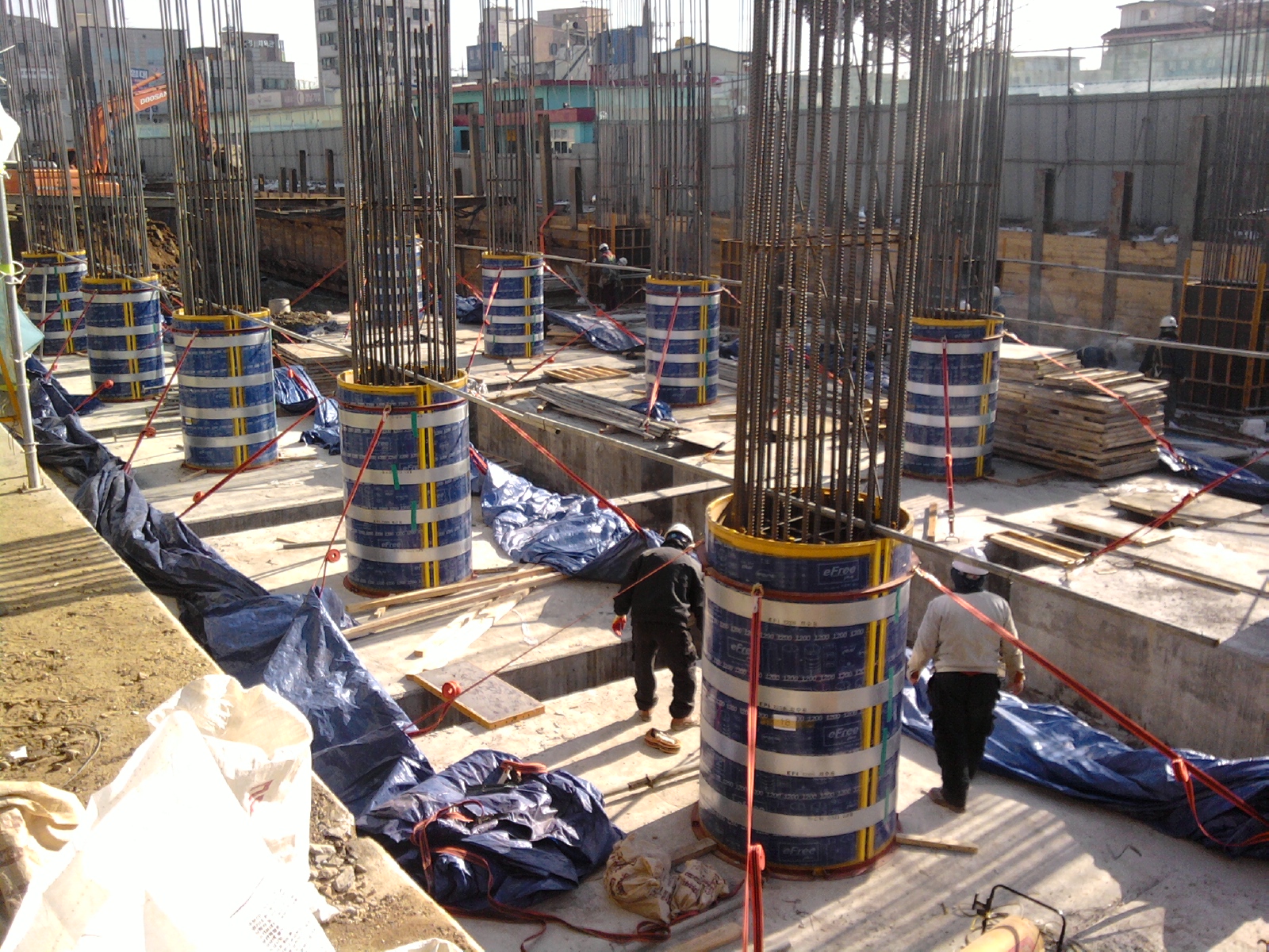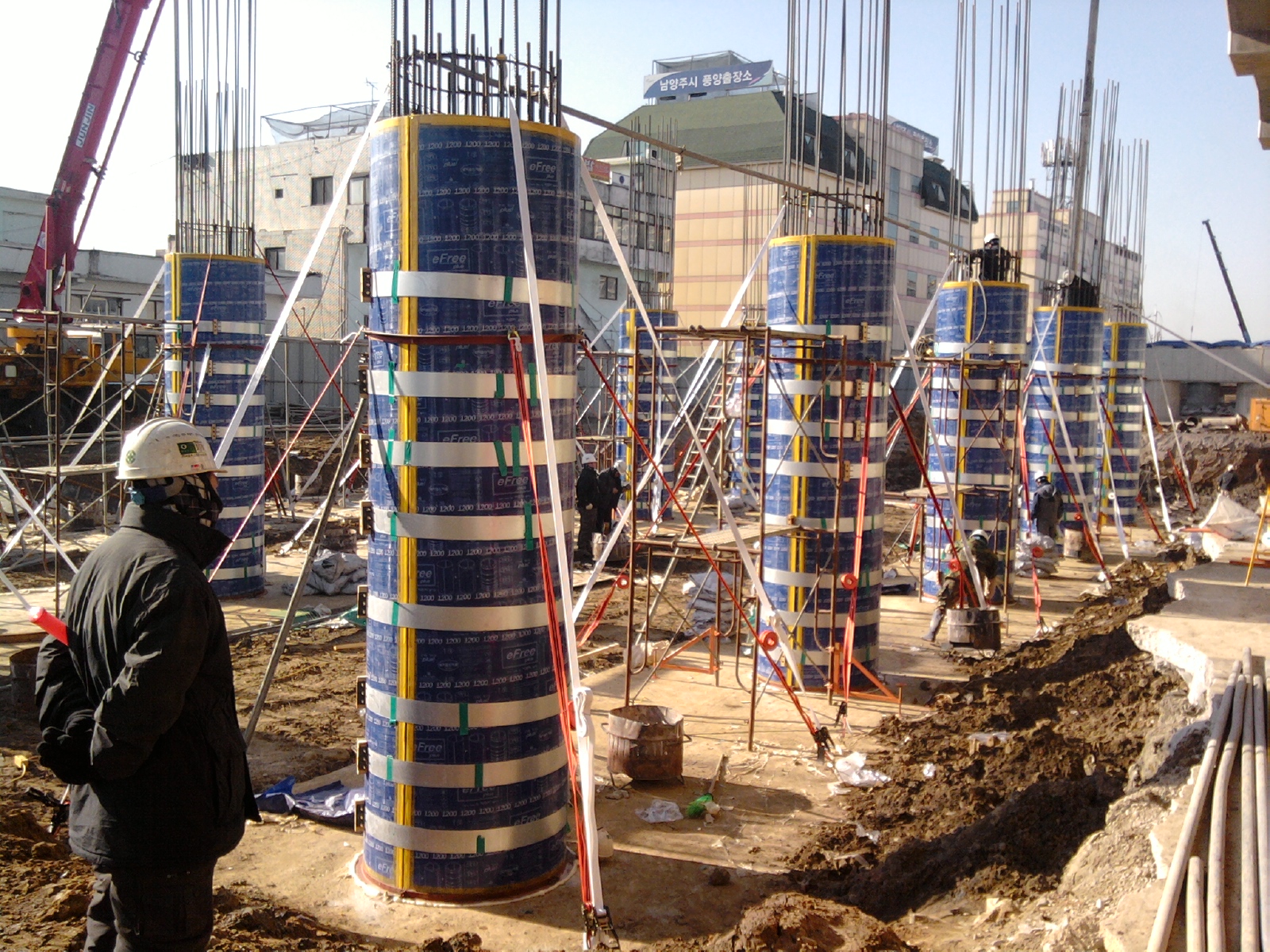 이 필수적인 현장이었으나 경제성이 뛰어난 종이거푸집으로 수십여개의 기둥을