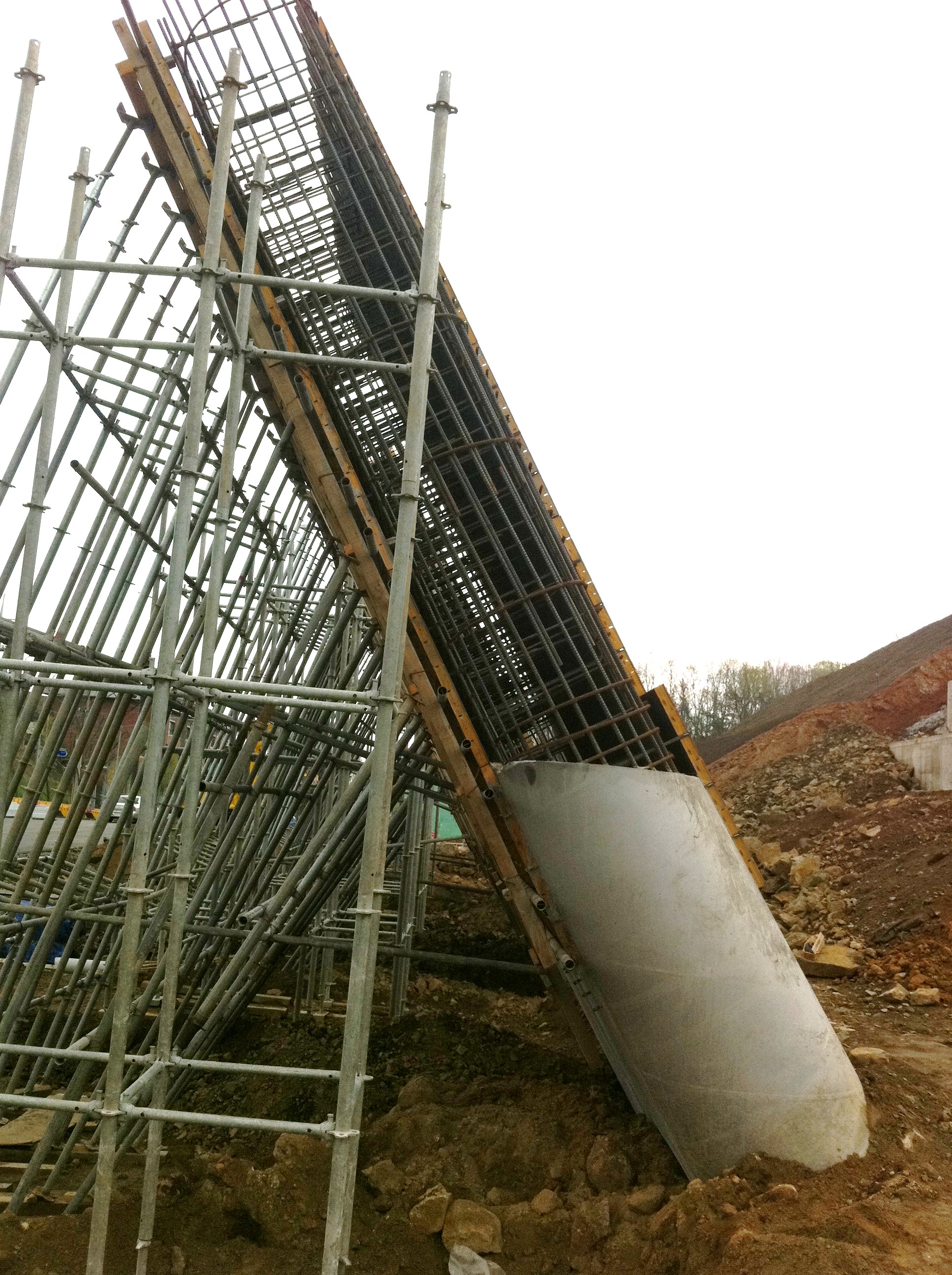 교각의 모양이 경기장트랙모양의 교각이 6개가 기울어져 있는 구조로