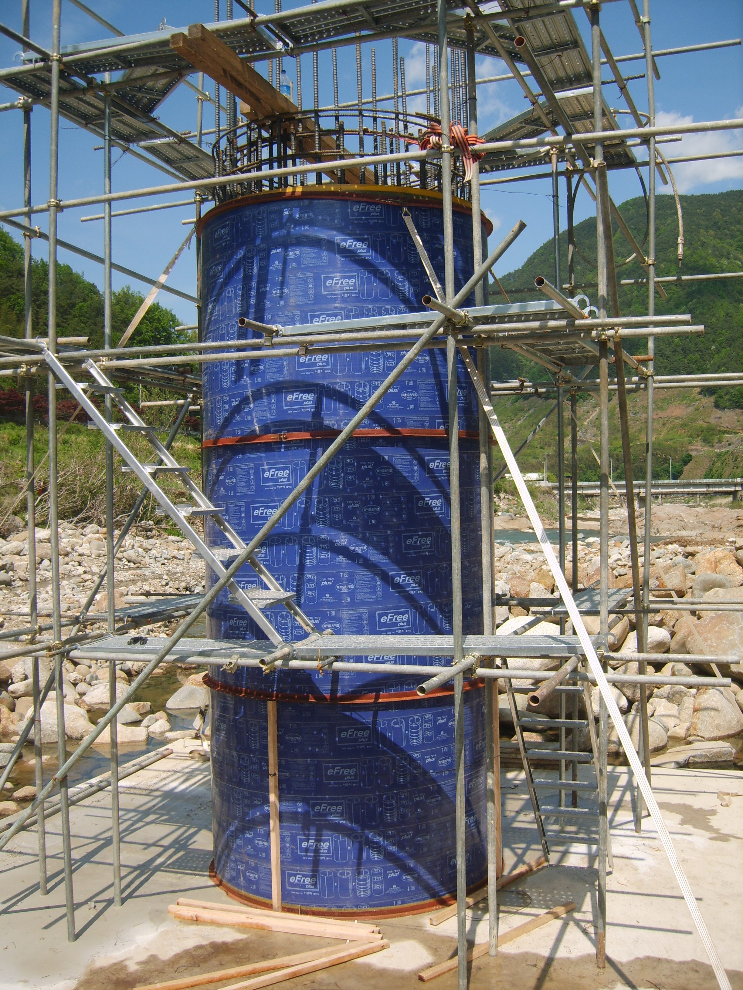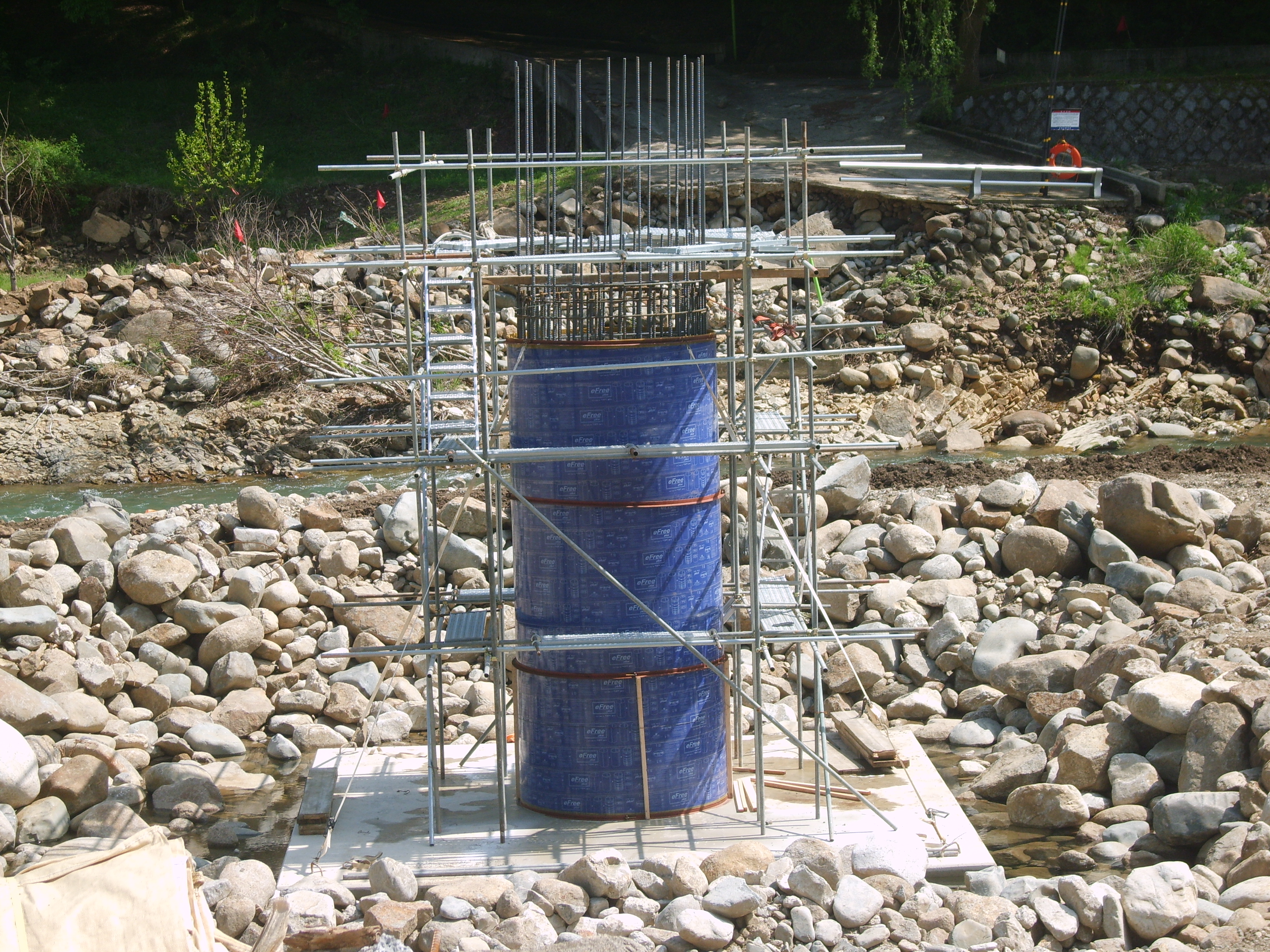 즈는 직경2.2m, 높이5.2m의 하천교량기둥시공을 위한