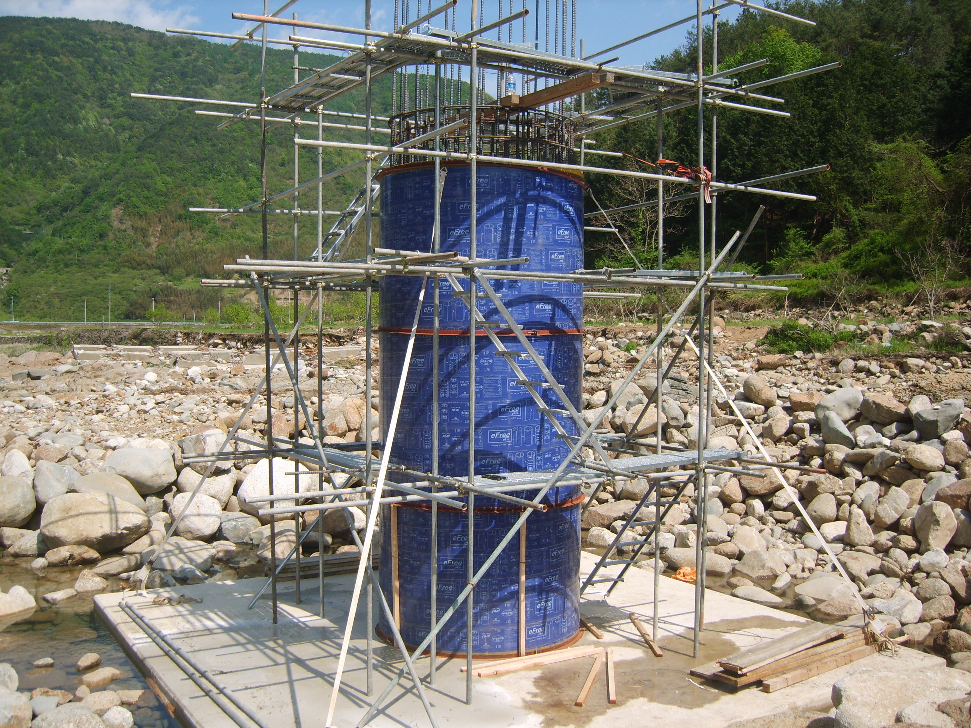 직경2.2m 교각기둥 1회용 거푸집 시공사진